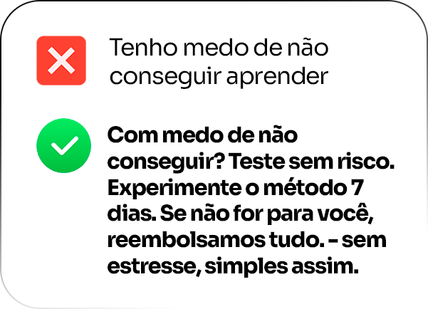 Não queremos que você continue no programa se não estiver 100% satisfeito com o conteúdo e o método!